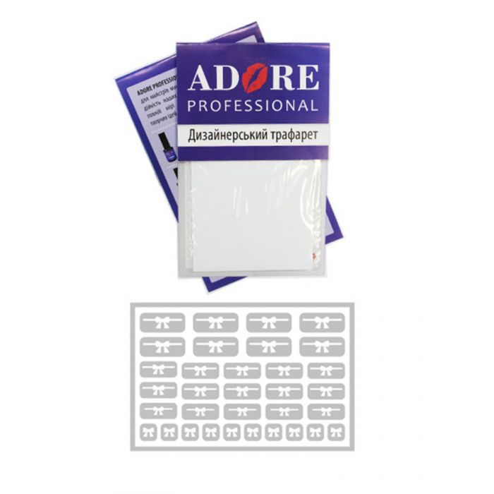 Дизайнерский трафарет ADORE Т04 "Бантики" – виниловый шаблон, с помощью которого можно создавать дизайн маникюра, заполняя пробелы. Это очень быстро и удобно, поэтому таким элементом для декора можно пользоваться и мастеру, и новичку.