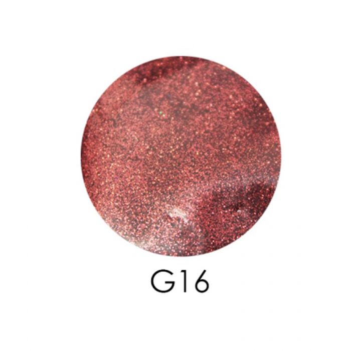 ADORE G16, 2,5 г (приглушенный розово-коралловый) – зеркальный глиттер для декора маникюра. С его помощью можно создавать оригинальные дизайны или делать однотонное зеркальное покрытие, используя подложку из цветного-гель-лака. Множество металлизированных мелких блесточек играют, словно зеркало, и создают объемный блеск на ногтях.