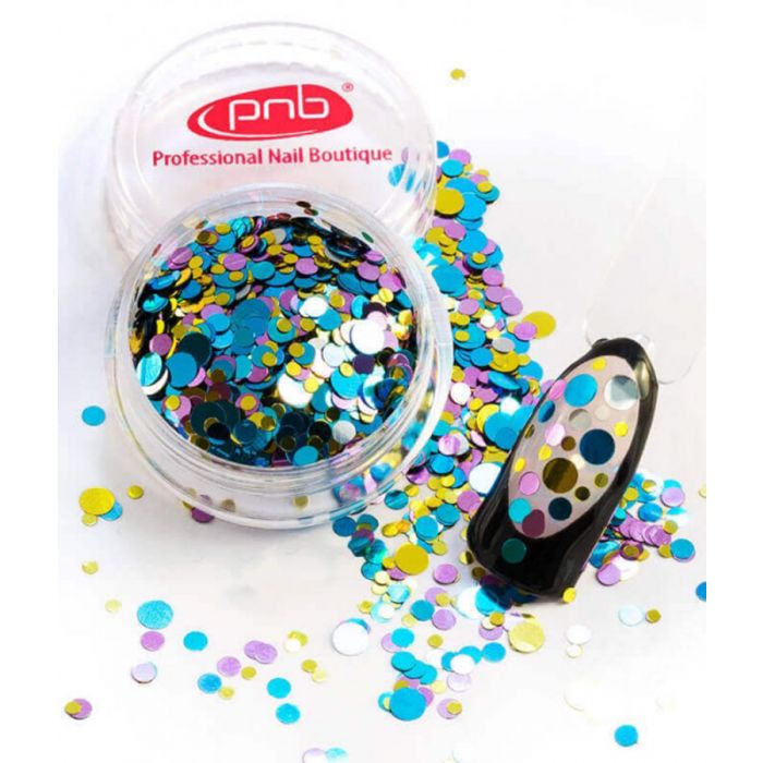Камифубуки (конфетти) PNB 07 1 г – конфетти для украшения маникюра. С ними дизайн станет интересным и разнообразным. Это круглые тонкие пластинки, напоминающие настоящие конфетти. Камифубуки очень просто наносятся и закрепляются на ногтях, долго держатся и не скалываются, достаточно комфортны в носке.